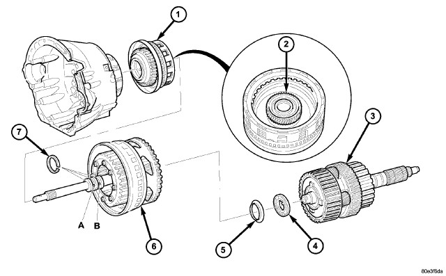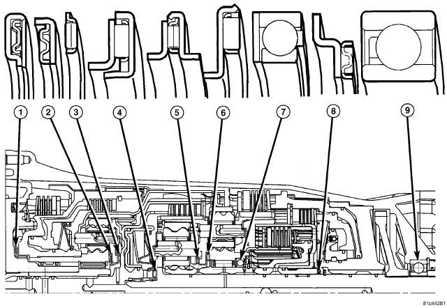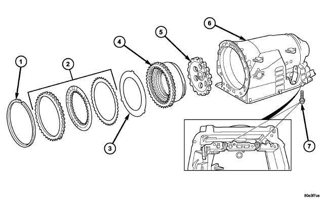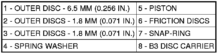 NOTE: Pay attention to sequence of discs. If the original clutch discs are reused, be sure to return the disc identified on disassembly as belonging on top of the spring washer (4) to its original location. Place new friction multiple-discs in ATF fluid for one hour before installing.