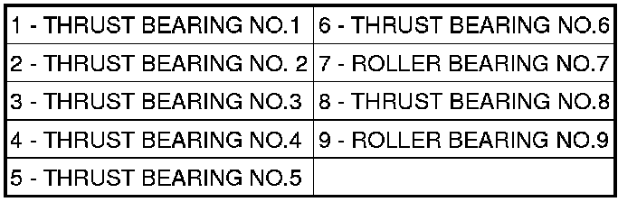 1. During assembly, install the thrust and roller bearings in the orientation shown.