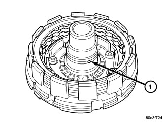6. Check that the K1 clutch feed hole (1) in the inner hub of clutch B1 is free before installing clutch B1.