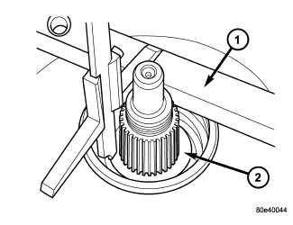 29. Install the retaining ring (1) that secure the output shaft bearing (2). Ensure that the retaining ring is seated correctly in the groove.