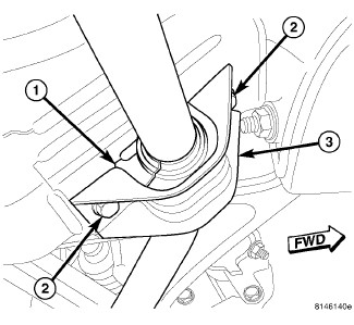 5. On each side of vehicle, install bolts (2) fastening stabilizer bar isolator retainer (3) in place. Tighten bolts to 60 Nm (44 ft. lbs.).