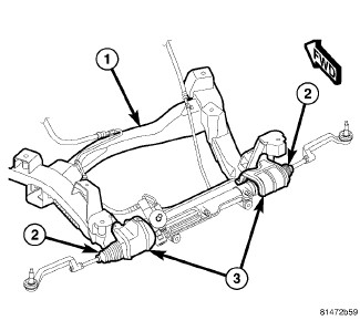11. Install heat shield (3) and mounting screws above each inner tie rod bellow.