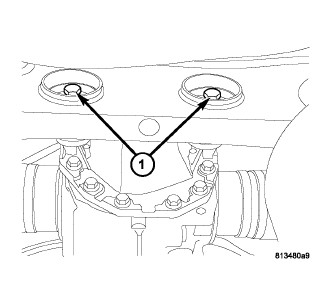 CAUTION: Differential mounting bolts (1) must be installed through bushings prior to crossmember installation in vehicle. Bolts cannot be inserted through bushings once crossmember is installed.