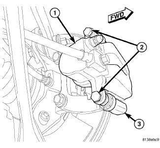 c. CAUTION: Extreme caution should be taken not to cross-thread caliper guide pin bolts (2) when they are installed.