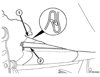 7. Position the front seat belt buckle lower anchor onto the stud near the rear of the inboard seat cushion frame. Be certain the anti-rotation tab on the anchor is engaged in the clearance hole of the frame.