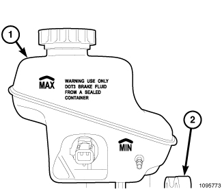 11. Check and adjust brake fluid level in reservoir (1).