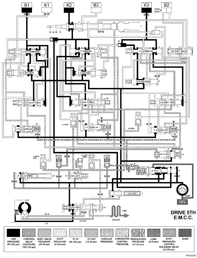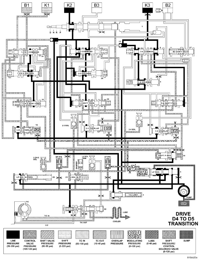 Figure 15 - HYDRAULIC FLOW IN DRIVE - FOURTH TO FIFTH GEAR TRANSITION