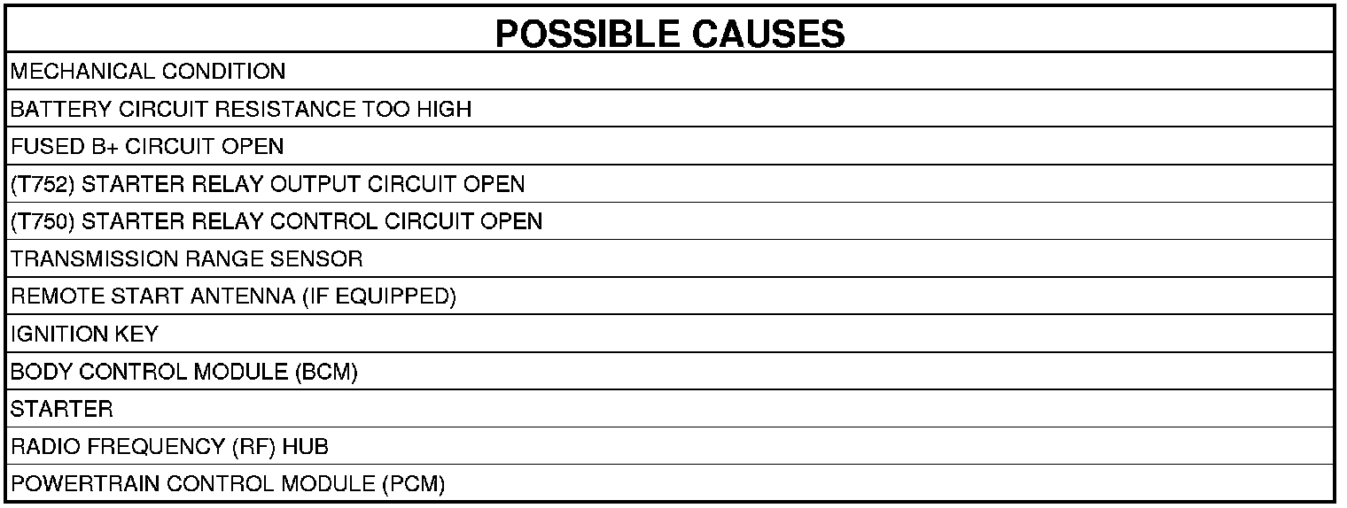 - Repair the (T752) Starter Relay Control circuit for an open or high resistance.
