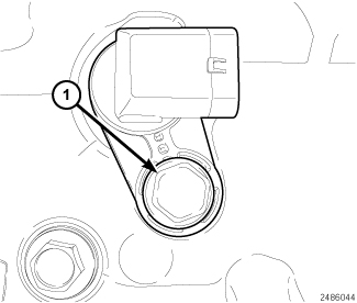 4. Install the CKP sensor mounting bolt (1) and tighten to 12 Nm (9 ft. lbs.).