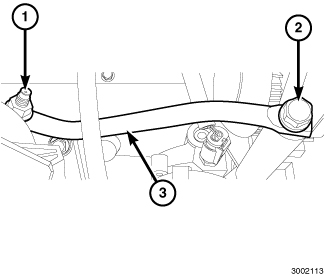 10. Position transmission cooler line (2) and install the transmission cooler line retainer clamp (1) to the right crossmember (3).