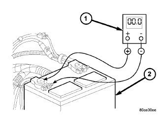 1. Connect volt-ampere tester (1) and (2) to battery terminals (Figure 1). See instructions provided by manufacturer of volt-ampere tester being used.