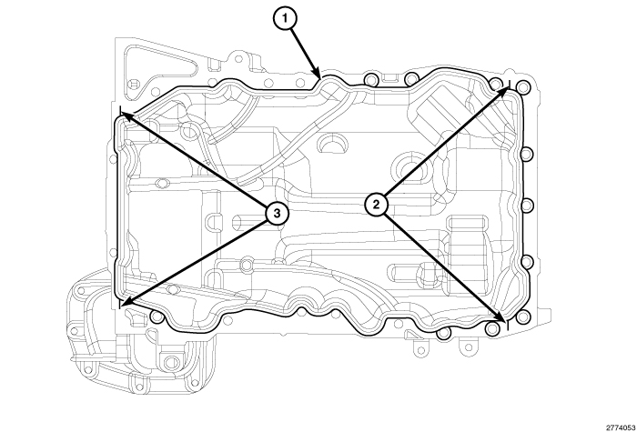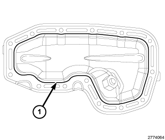 2. Remove all residual sealant (1) from the upper and lower oil pans Procedures