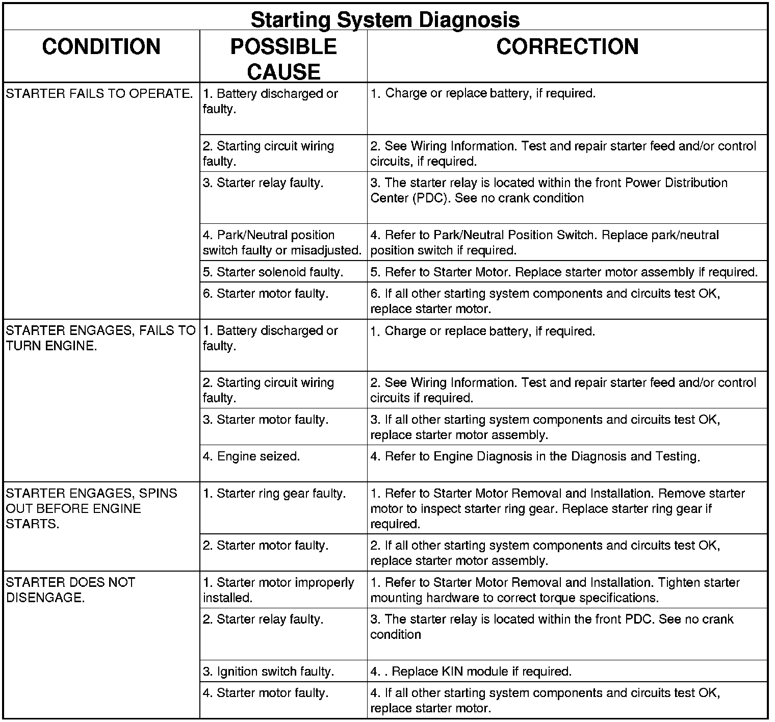 NOTE: For complete starter wiring circuit diagrams, refer to 8, Wiring Diagrams. The battery must be fully-charged and load-tested before proceeding. Refer to Battery in 8, Battery.