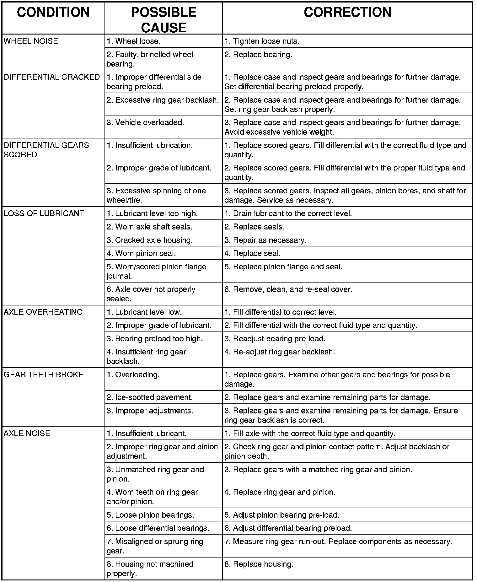 When road testing, first warm-up the axle fluid by driving the vehicle at least 5 miles and then accelerate the vehicle to the speed range where the noise is the greatest. Shift out-of-gear and coast through the peak-noise range. If the noise stops or changes greatly: