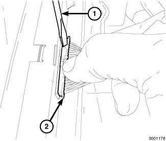 2. Remove the instrument cluster bezel retainer (1) and remove the bezel (2).Instrument Cluster Bezel - Removal.
