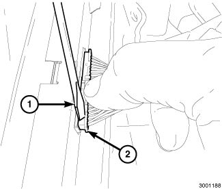 6. Using a pocket screw driver or a trim stick or equivalent (1), gently pry on one side of the connector (2).