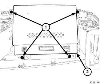 9. Remove the retainers (1) and remove the (ICS) screen module (2) from the instrument panel bezel.