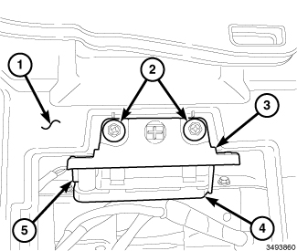 4. Pull the RCM (4) and mounting bracket out from the instrument panel structural support far enough to access and disconnect the instrument panel wire harness connector (5) from the RCM connector receptacle.