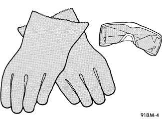 Following a Supplemental Restraint System (SRS) component deployment, the vehicle interior will contain a powdery residue. This residue consists primarily of harmless particulate by-products of the small pyrotechnic charge that initiates the propellant used to deploy a SRS component. However, this residue may also contain traces of sodium hydroxide powder, a chemical by-product of the propellant material that is used to generate the inert gas that inflates the airbag. Since sodium hydroxide powder can irritate the skin, eyes, nose, or throat, be certain to wear safety glasses, rubber gloves, and a long-sleeved shirt during cleanup.