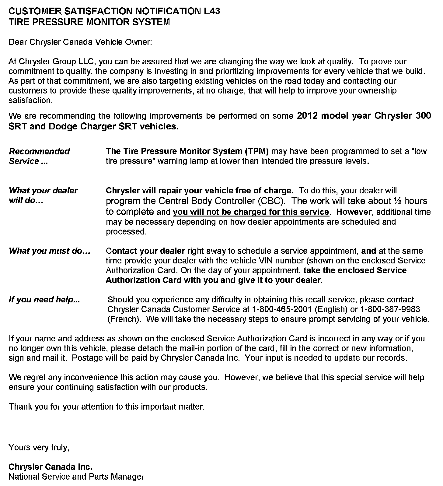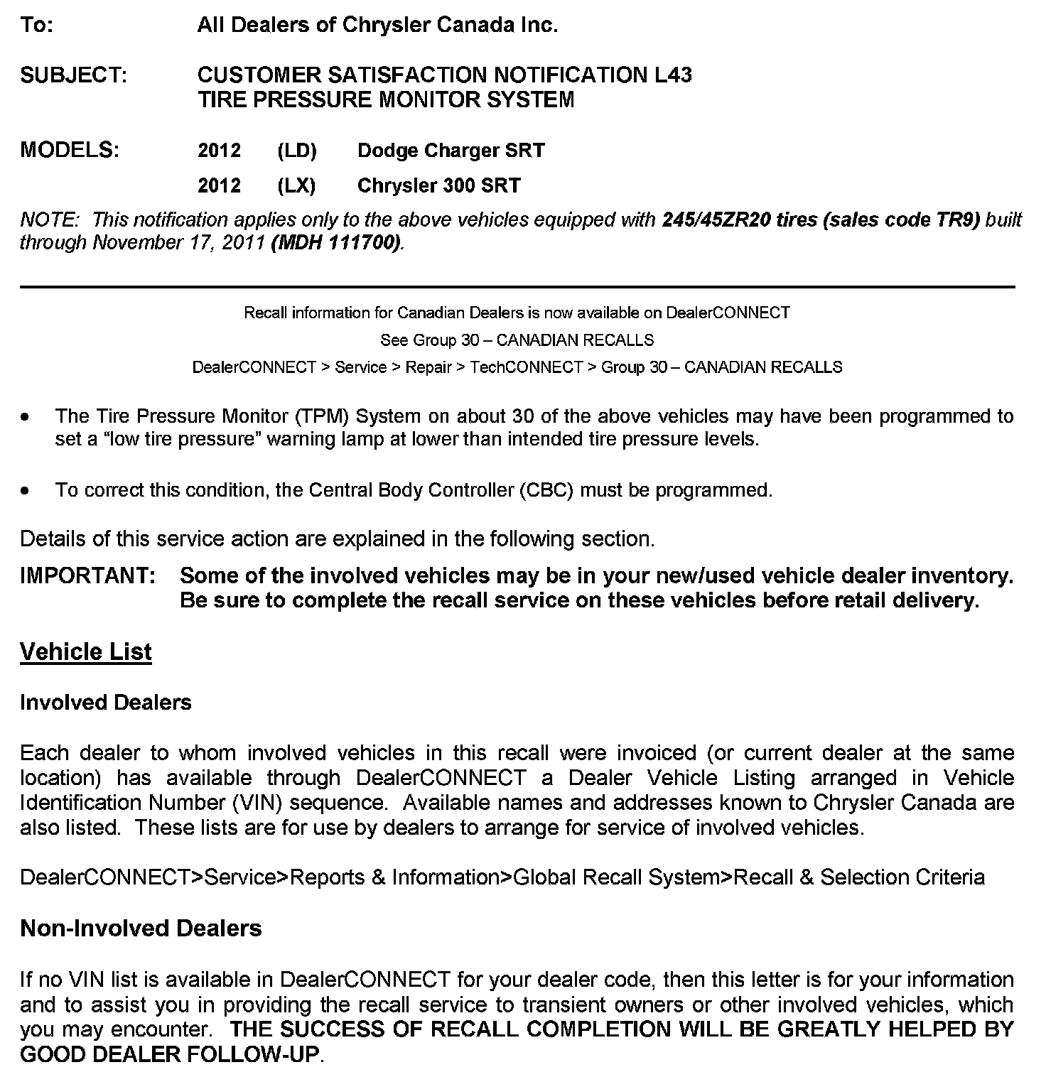 Canada - Campaign - L43 Tire Pressure Monitor System