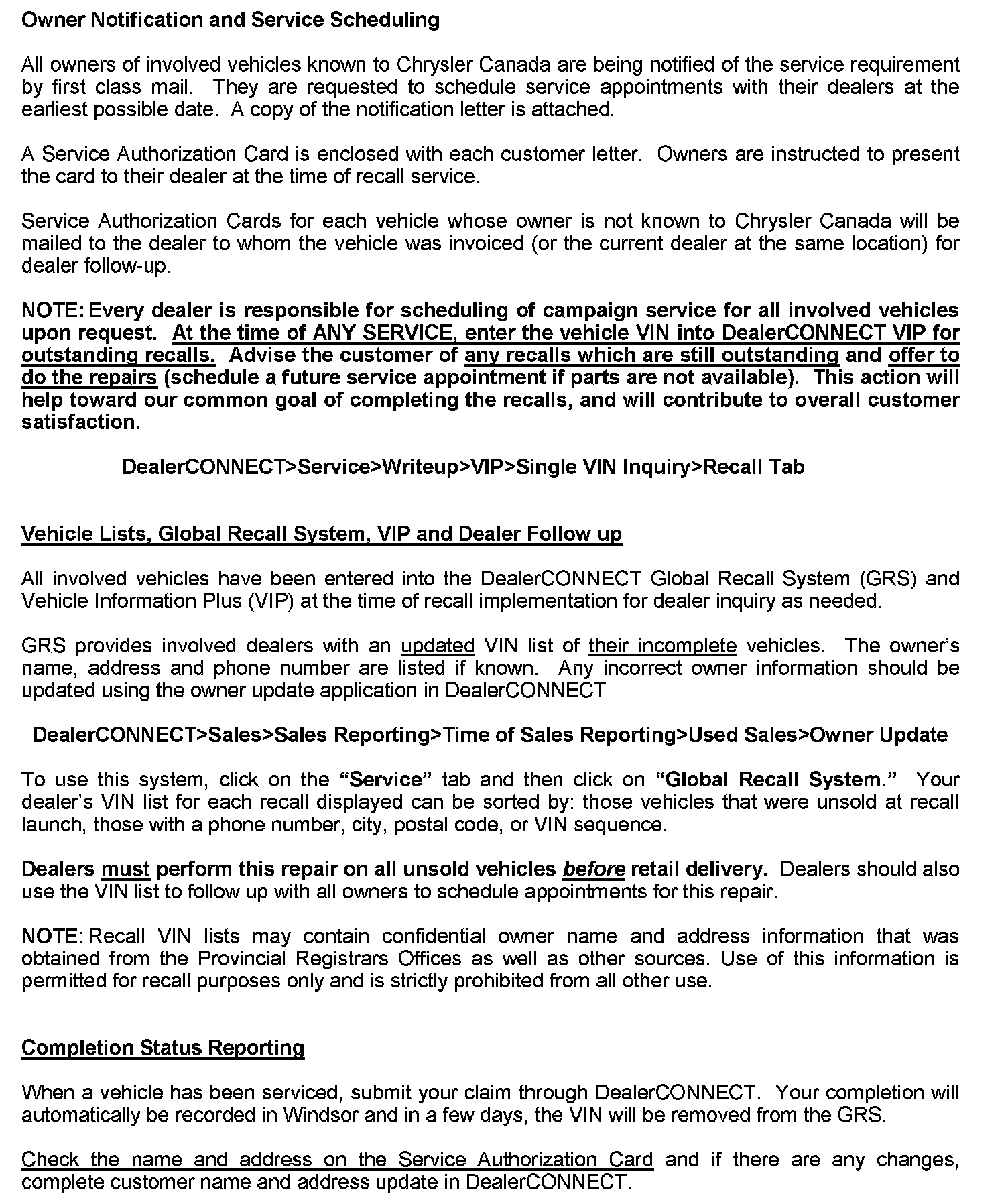 This Canadian Recall Notification can also be found in DealerCONNECT - See below:
