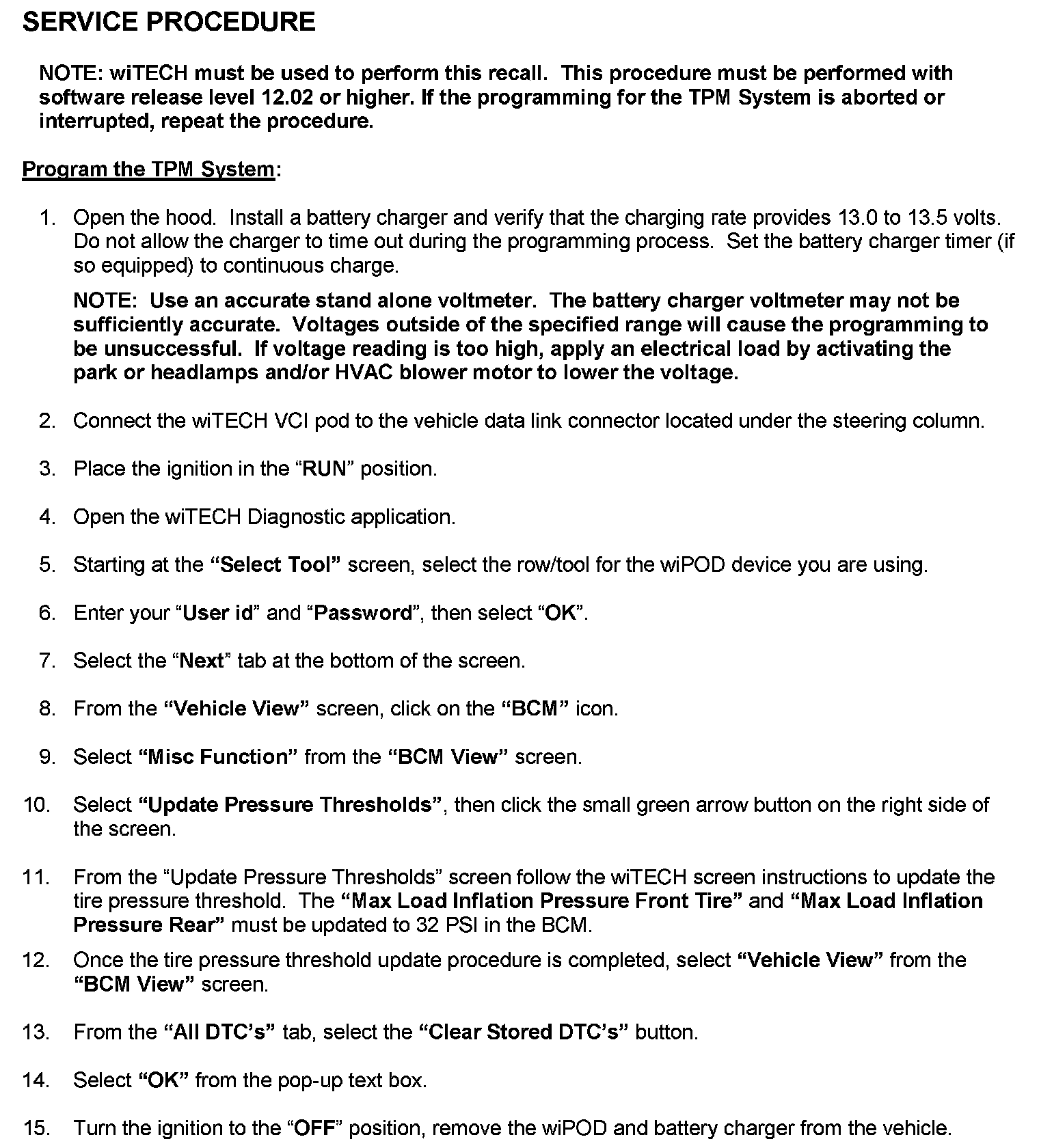 ^ The Tire Pressure Monitor (TPM) System on about 30 of the above vehicles may have been programmed to set a - low tire pressure" warning lamp at lower than intended tire pressure levels.