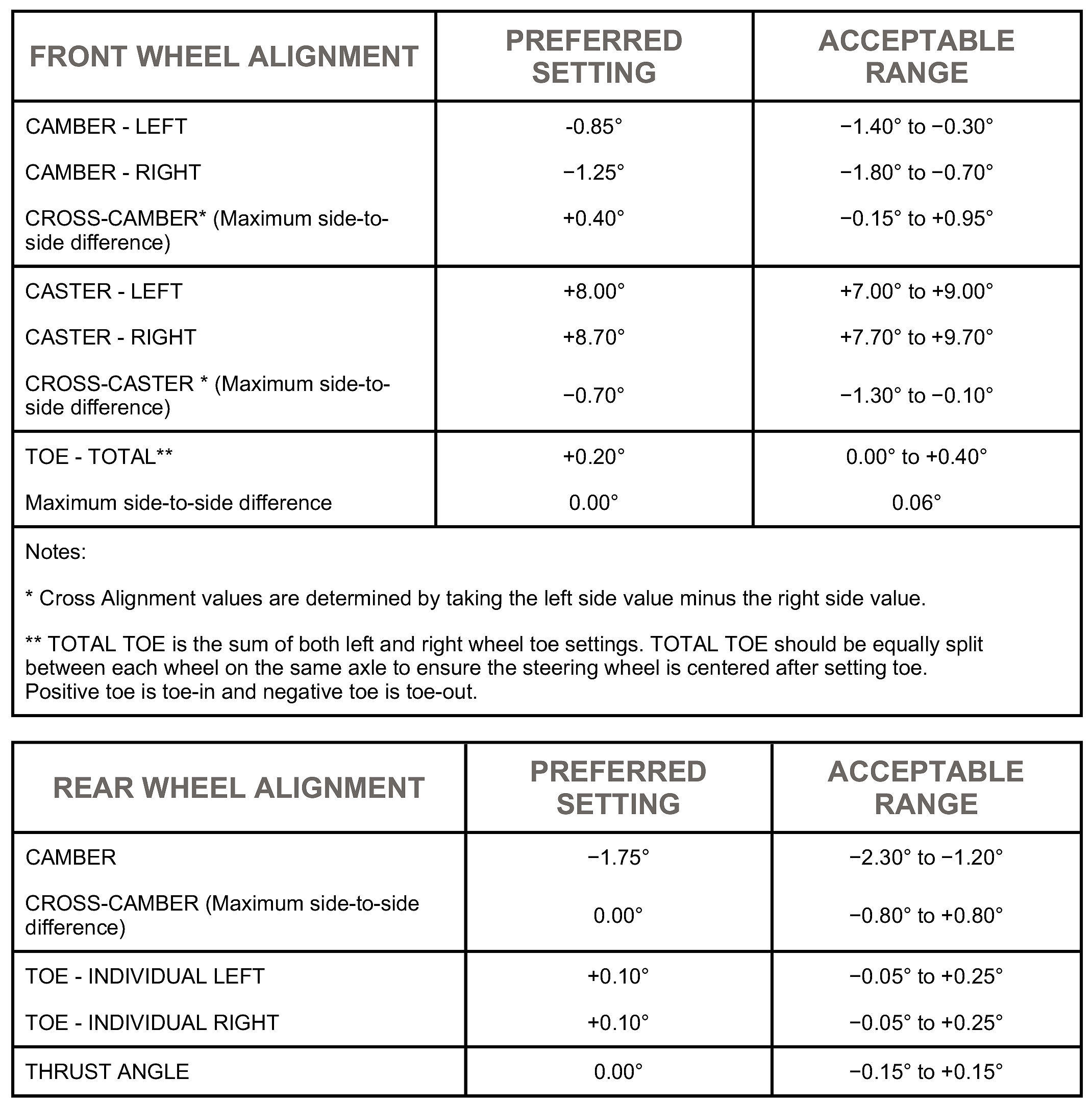 All wheel alignments are to be set at curb height.