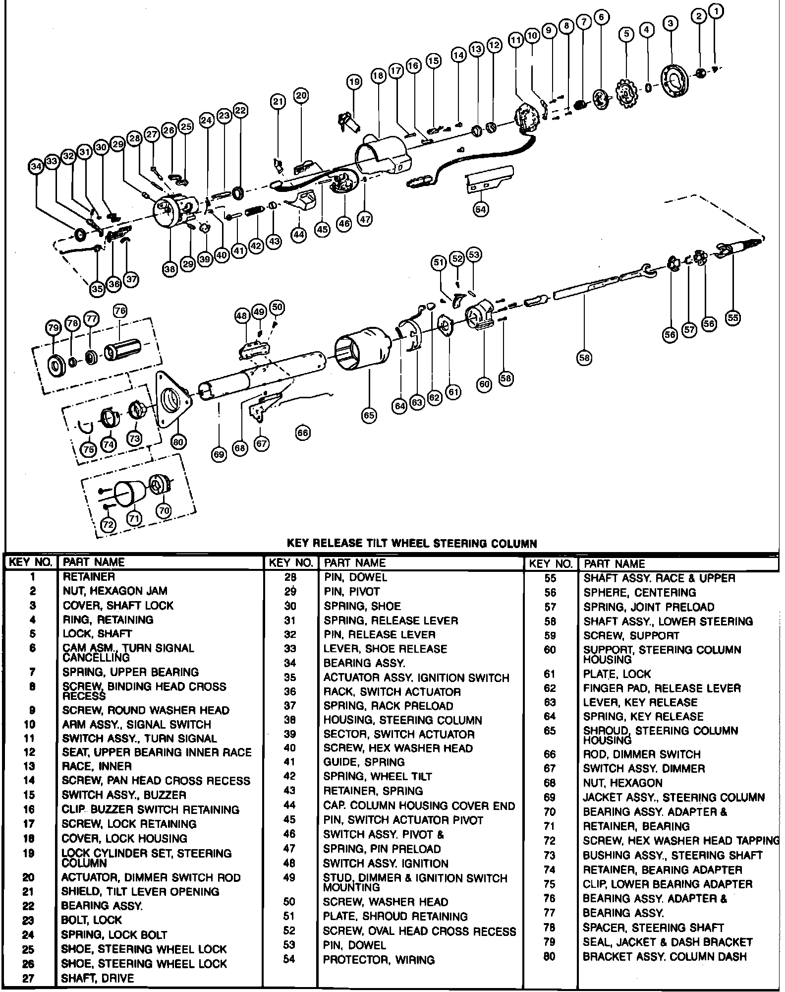 Fig. 31 Key release tilt steering column exploded view (Typical):