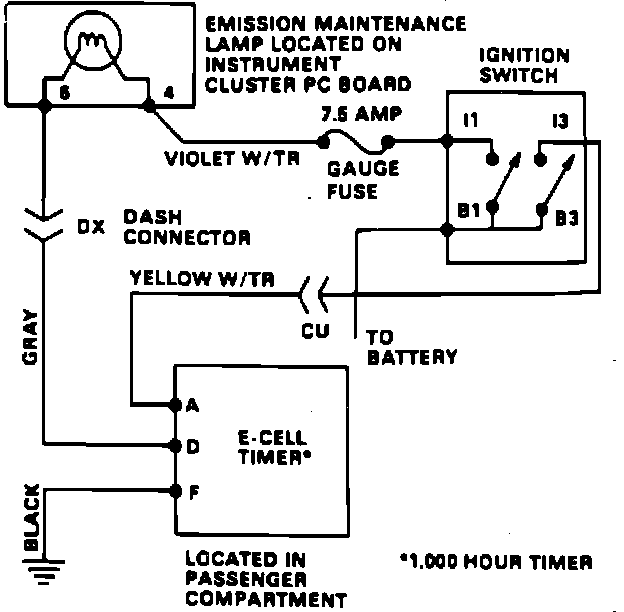 The emission maintenance lamp will illuminate after 1000 hours of engine operation to indicate that the oxygen sensor must be replaced. After performing the required service, the emission maintenance E-Cell timer must be replaced for the next 1000 hour interval.