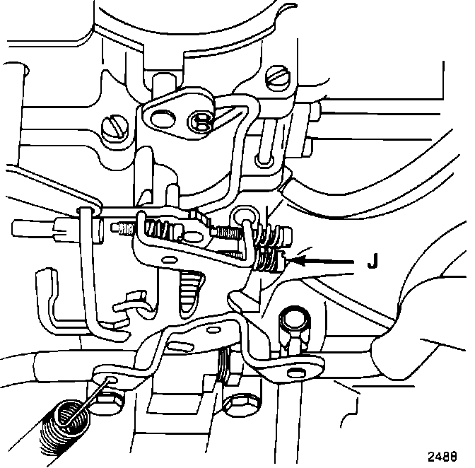 6. Adjust the carburetor curb (slow) idle speed adjustment screw (J) to obtain the specified curb (slow) idle speed rpm. Refer to the Vehicle Emission Control Information label.