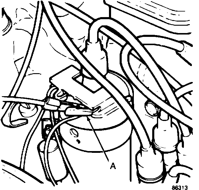 5. Disconnect and plug the distributor vacuum advance hose (C).