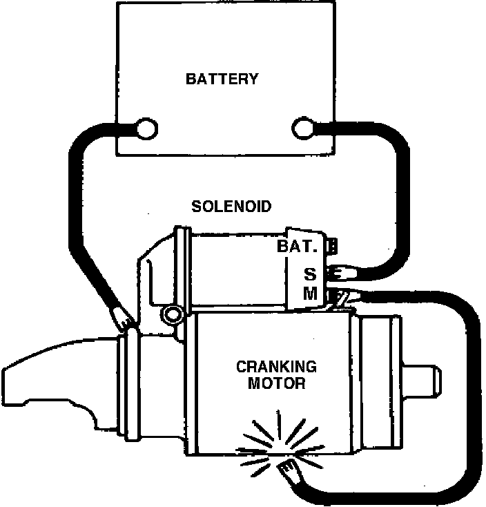 Pinion clearance should be checked after the motor has been disassembled and reassembled. To check, disconnect motor field coil connector from solenoid terminal and insulate end. Connect one battery lead to solenoid switch terminal and the other lead to the solenoid frame. Using a jumper lead connected to the solenoid motor terminal, momentarily flash the lead to the solenoid frame. This will shift the pinion into the cranking position until the battery is disconnected.
