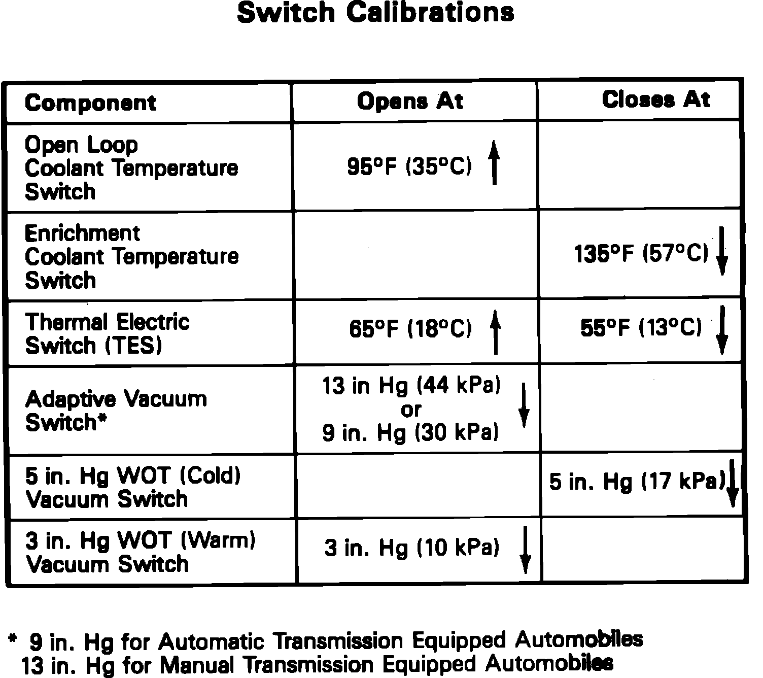 This mode of operation occurs when the engine is either at idle speed, accelerating from idle speed or decelerating to idle speed. If the engine RPM (tach) voltage is less than the calibrated value and manifold vacuum is above the calibrated switching level for the adaptive vacuum switch (switch open), an engine-from acceleration-from idle speed condition is assumed to exist. If the engine rpm (tach) signal is greater than the calibrated value and manifold vacuum is above the calibrated switching level of the adaptive vacuum switch (switch closed), an engine-deceleration-to-idle speed condition is assumed to exist. During the adaptive mode of operation, the MC solenoid provides a predetermined air/fuel mixture.
