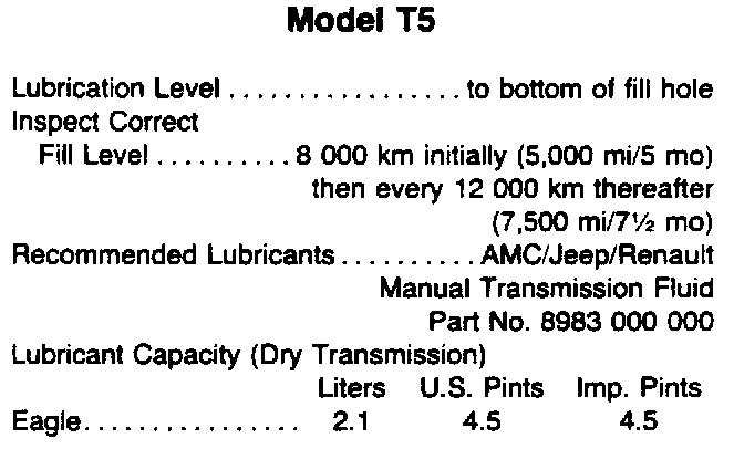 Model T5 Lubrication And Capacity: