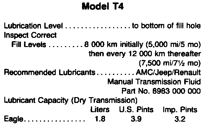 Model T4 Lubrication And Capacity: