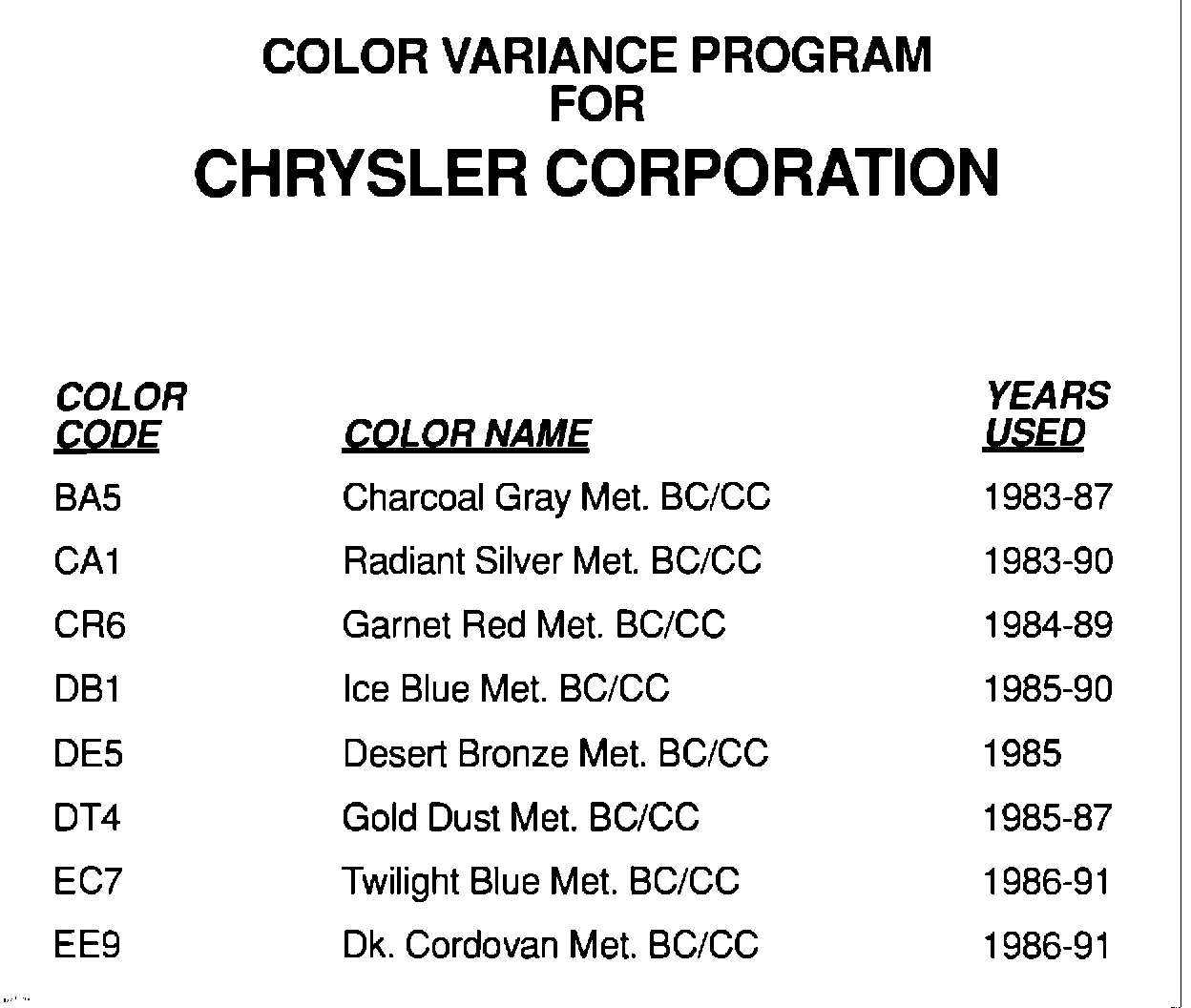 Paint - Vehicle Color Variance Program
