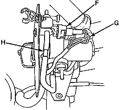 6. Disconnect safety solenoid electrical connector (F), then the vacuum control.