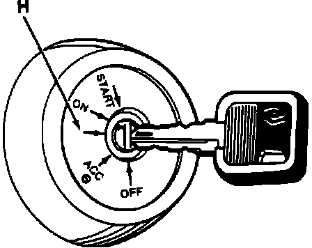 9. Turn ignition switch to the unmarked (arrow) position (H).