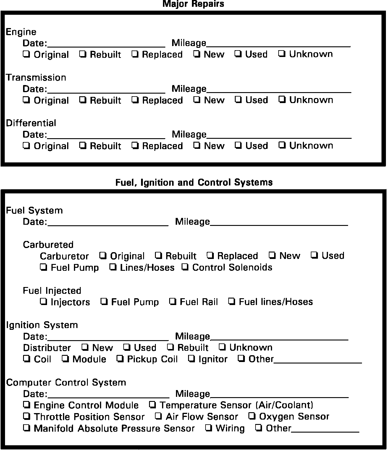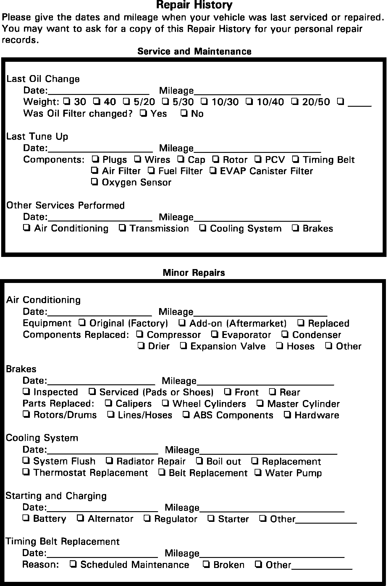 VEHICLE REPAIR HISTORY