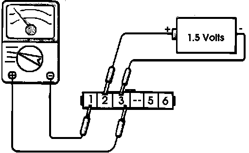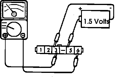 5. Connect the positive lead of a 1.5 volt battery to terminal # 5 and the negative lead of the battery to terminal # 3.