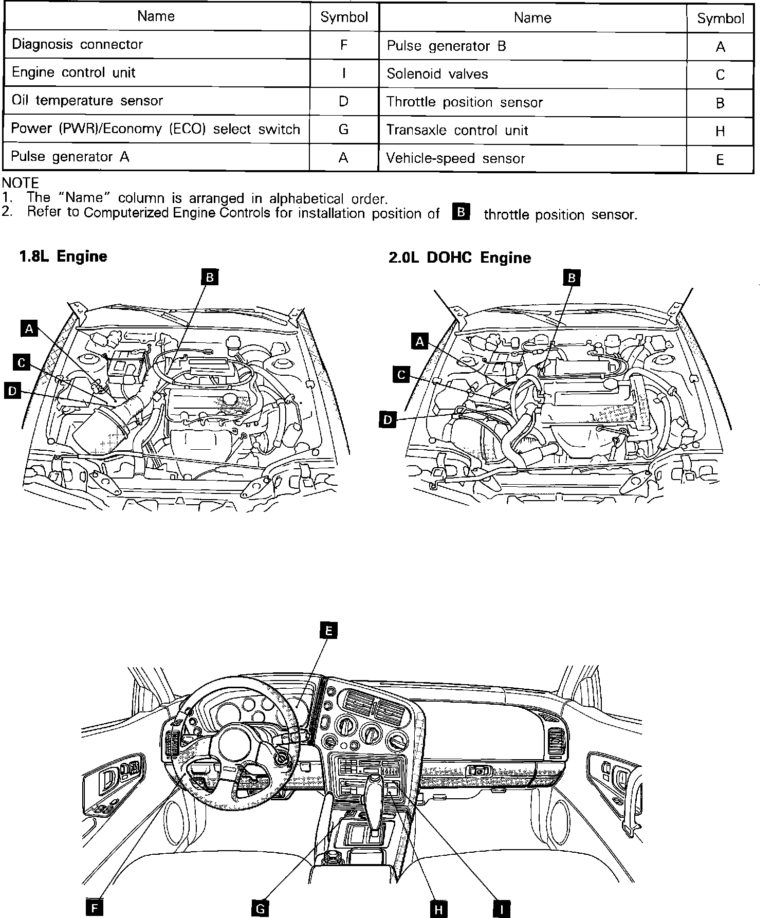 Component/Relay/Switch Locations (Automatic Transaxle):