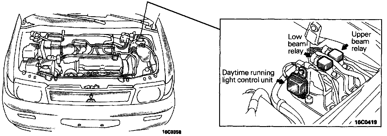 Daytime Running Light Control Unit, Low & Upper Beam Relays: