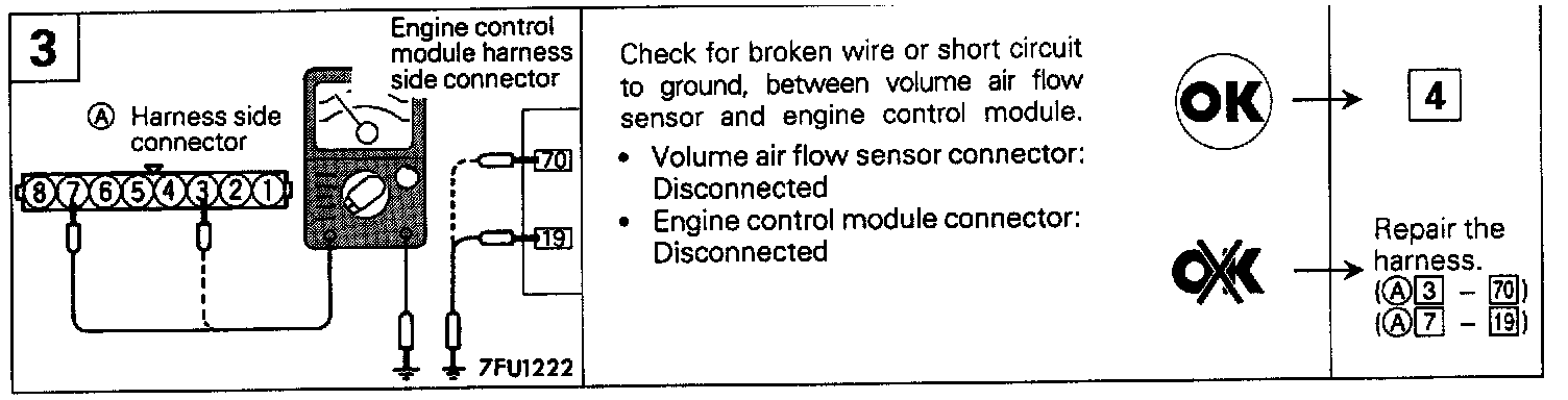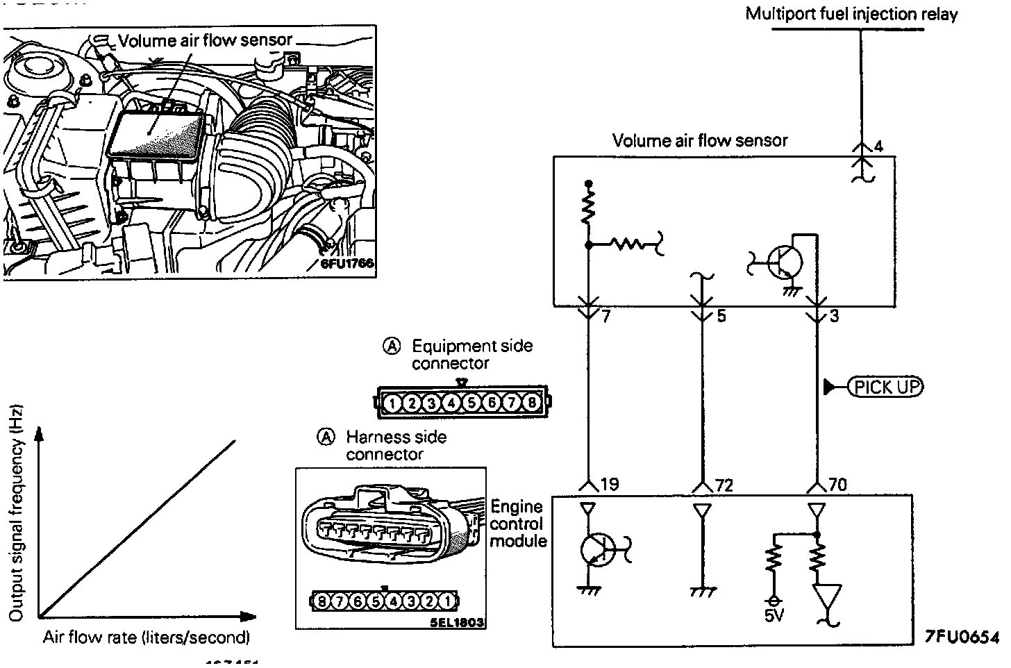 Hint 3: If the engine can be run idle even though the volume air flow sensor output frequency is out of specification, troubles are often found in other than the volume air flow sensor itself.