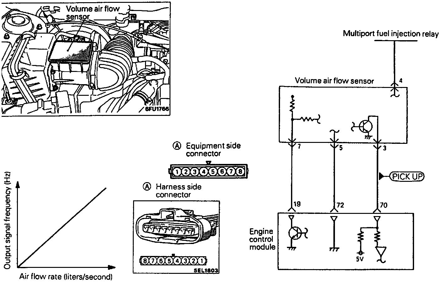 Hint 3: If the engine can be run idle even though the volume air flow sensor output frequency is out of specification, troubles are often found in other than the volume air flow sensor itself.