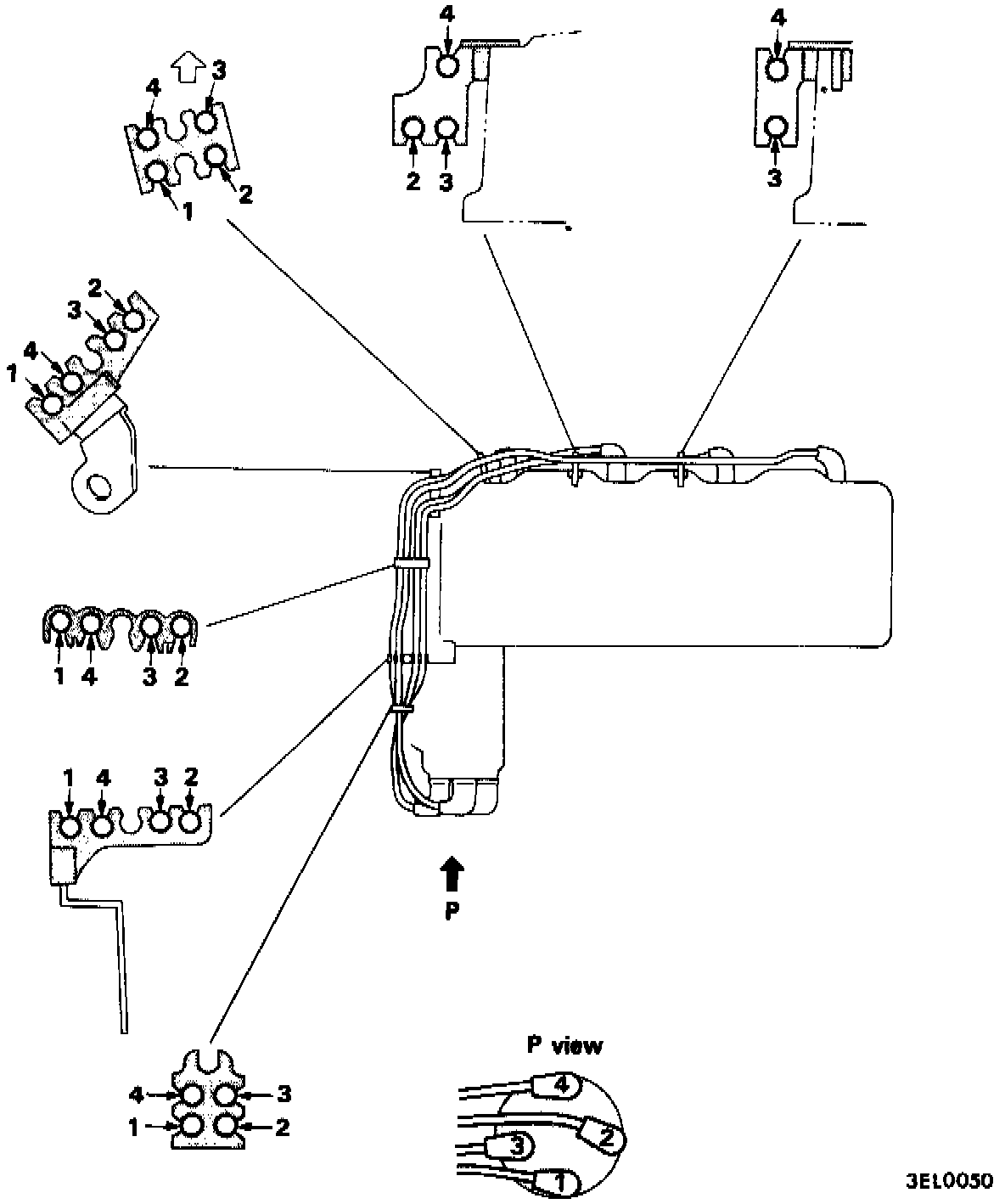Note: Improper arrangement of spark plug cables will induce voltage between the cables, causing miss firing and developing a surge at acceleration in high-speed operation. Therefore, be careful to arrange the spark plug cables properly by the following procedure.