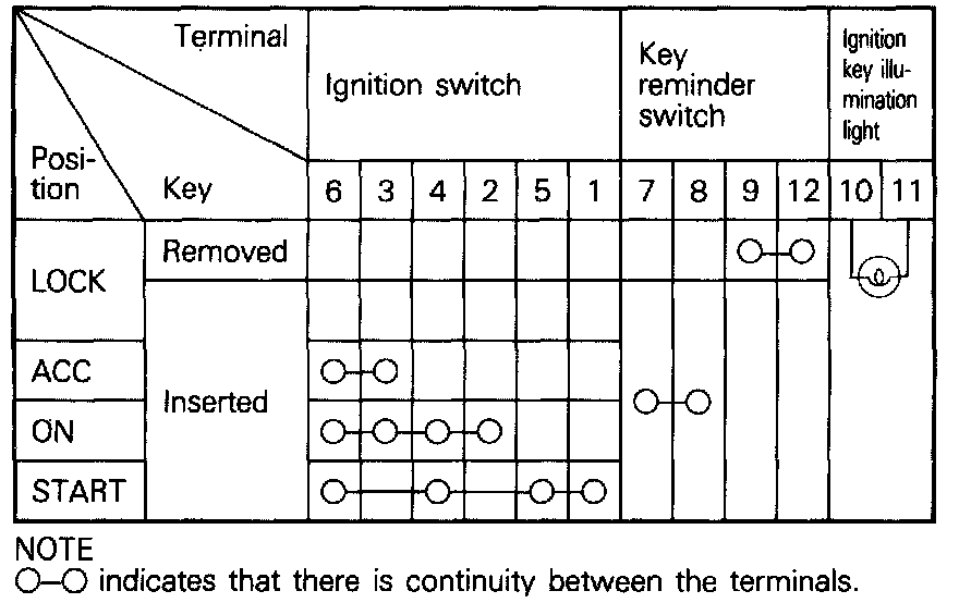 Ignition Switch InspectionInspection Of Ignition Switch: