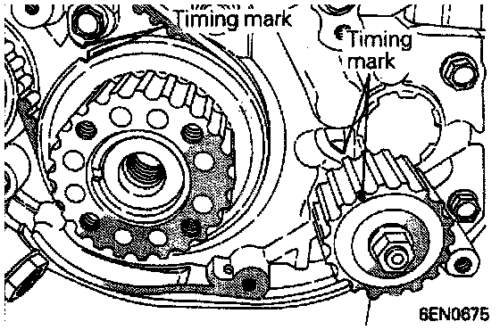 Fig. 59 Aligning Exhaust & Intake Camshaft Sprocket Timing Marks.: