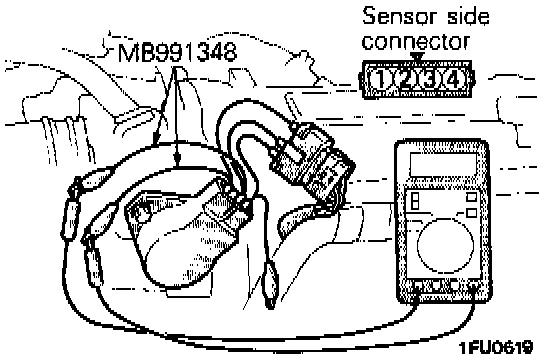 3. Using a high-impedance digital voltmeter, carefully back probe the throttle position connector into terminals #2 and #4. Refer to the connector in the image.