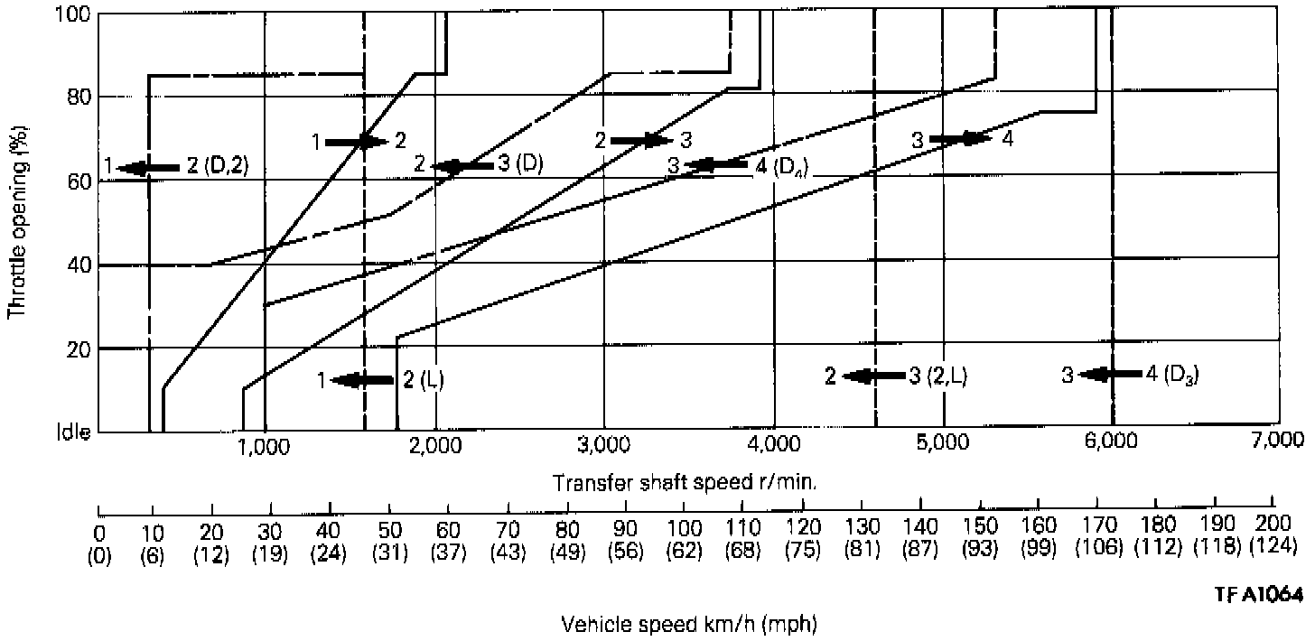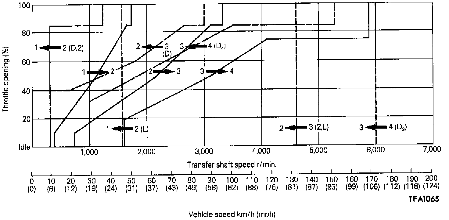 Two shift patterns are pre-stored in the control module of this transaxle. One is the power pattern (for more powerful performance), and the other is the economy pattern (for improved fuel consumption and quieter operation).