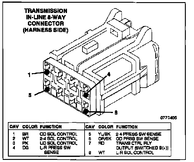 Transmission In-Line 8 Way Connector Harness Side: